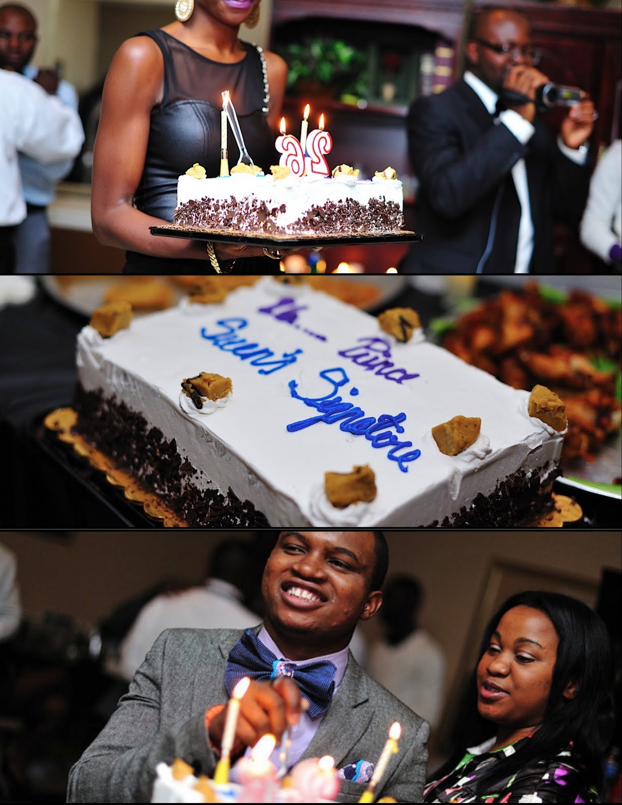 I had a blast planning one of my friend’s 26th Cocktail party!! The men came out in black bow ties while the women came dressed in cute dresses. The event was very enjoyable; we played group games, ate, drank and danced all night. I styled the birthday boy’s outfit and I also designed his bow tie and pocket scarf :-).