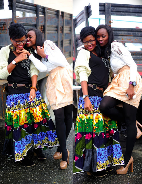 I’m so much in love with the gypsy skirt that my cousin, Valerie black is wearing. She used mixtures of different ankara prints to design this skirt, what do you think?