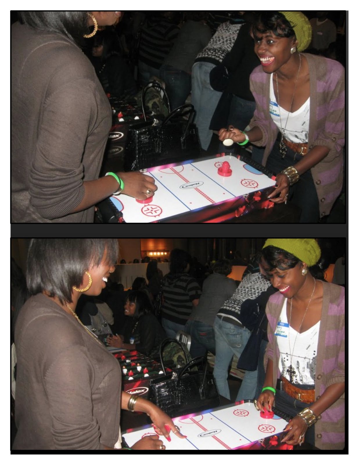 We had a great time playing a friendly game of Taboo over pizza and wine, while my team crushed Memi’s team! Later on that evening, we got ready for a night filled with more games at the Aloft Hotel at the National Harbor. A promotion team called Host-DC hosted an event called “Recess”, which was basically an evening for Young Professionals to come together and network while bringing out their inner child. While there we played games such as Connect Four, Air Hockey, Foosball, Hungry Hippos, and more Taboo! It was really fun and refreshing! Dapo suggested that we recording me CRUSHING memi while playing Air Hockey :-), Video is below. Then we headed over to Cadillac Ranch where they had a mechanical bull, we sat at the bar and ate while laughing at people trying not to fall from the bull! It was a night filled with laughter, fun, and food! Good times!